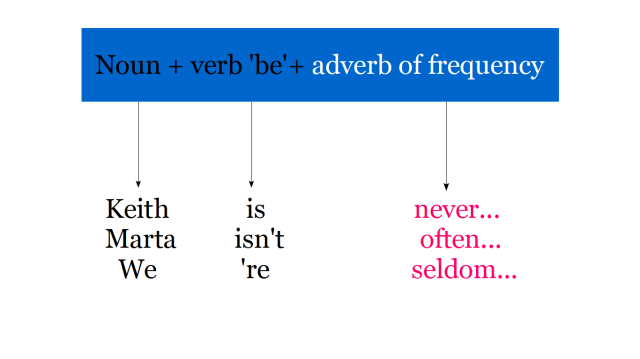 Przysłówki częstotliwości wstawiamy po odpowieniej formie czasownika ‘be’ (być).