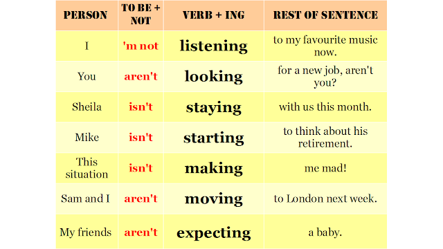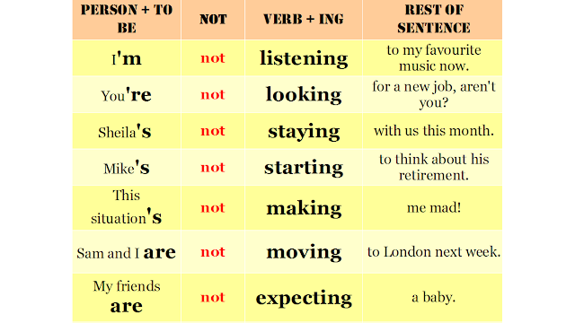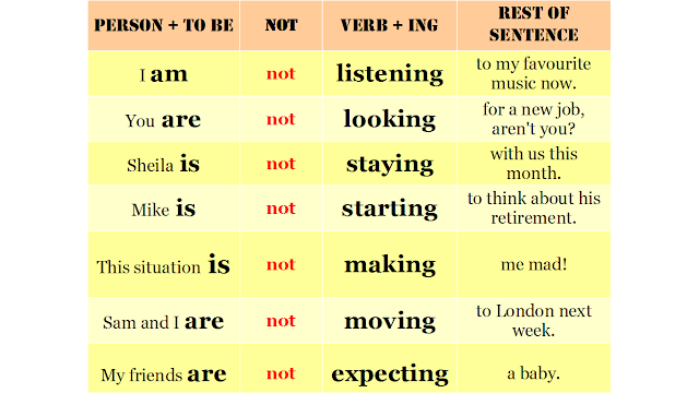 Last time I showed you how to build sentences in Present Continuous and when to use this tense. Do you need to recap before we go on to negative sentences? Poprzednim razem pokazałam wam jak budować zdania w czasie Present Continuous oraz kiedy używac tego czasu. Jeśli potrzebujecie powtórki zanim przejdziemy do przeczeń kliknijcie w poniższy link. Click here: previous post.