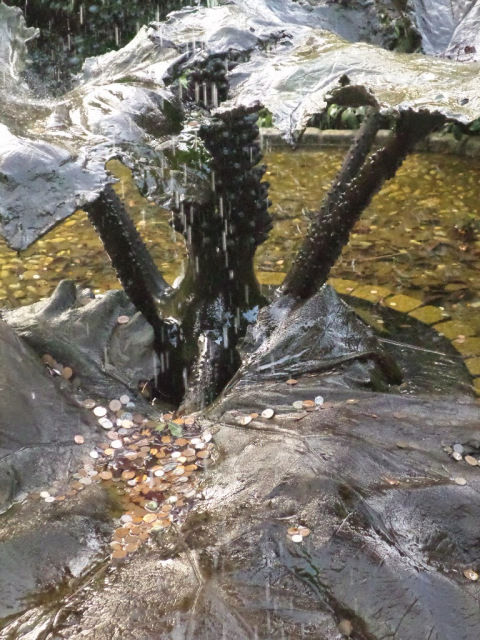 Now, it’s time for a big walk! But firstly, we need to throw a coin onto a leaf of Gunnera Manicata – fountain in the form of a huge plant which grows in Trebah Garden in spring and summer season.