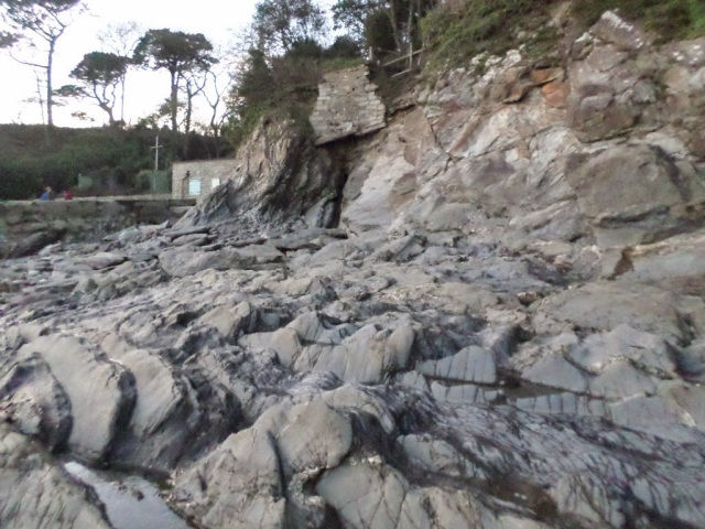 The footpath leads to Trebah Beach which is the most interesting beach in the area. Typically rocky beach with clear water, not much seaweed and even a small grotto.